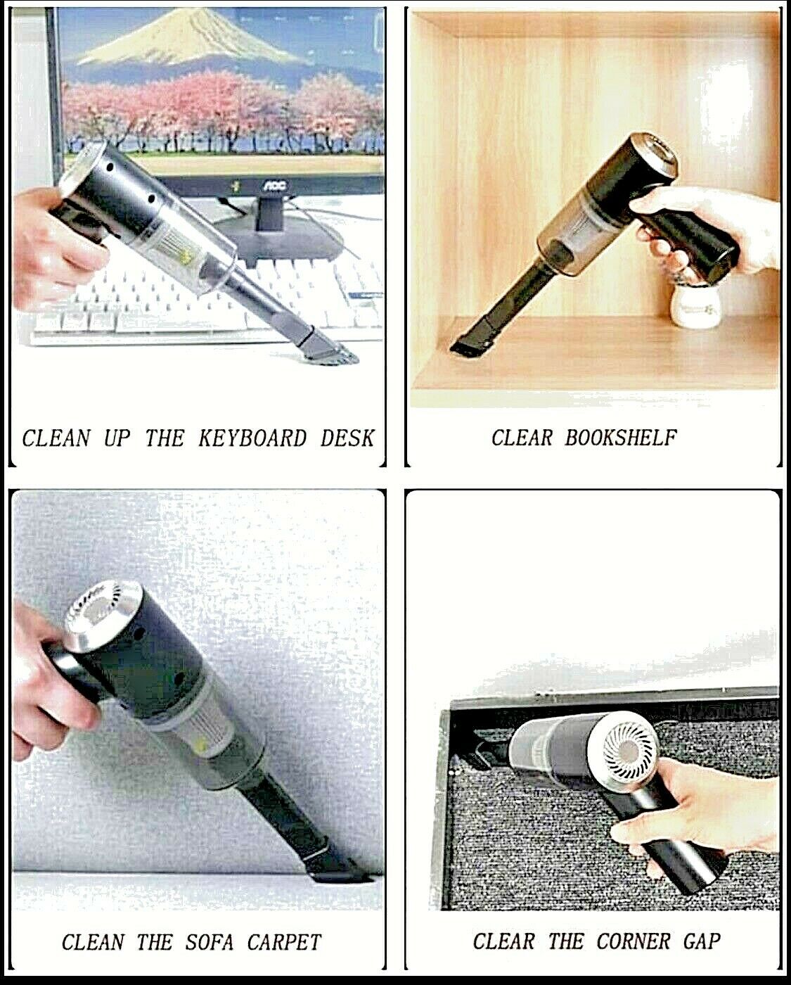 إليك مكنسة يدوية لاسلكية الخيار الأنسب لك للقيام بأعمال التنظيف بكل سهولة، تساعدك على التخلص من الغبار والأوساخ بفضل تصميمها المميز خفيف الوزن مناسب للسيارات والأماكن الصغيرة وإستعمال غير محدود بدون معاناة سلك الطاقة وتغيير مكان المقبس كل مرة. بالإضافة الى بطارية مدمجة تدوم طويلاً.