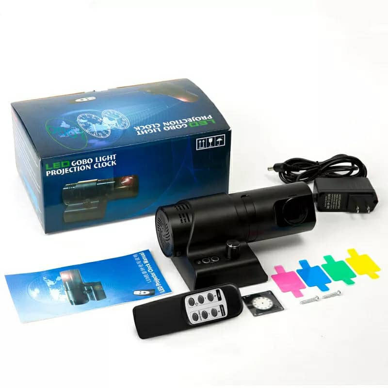 GOBO Projecteur horloge mural HD Rotation à 180 degrés 2 mode et 4 couleur
